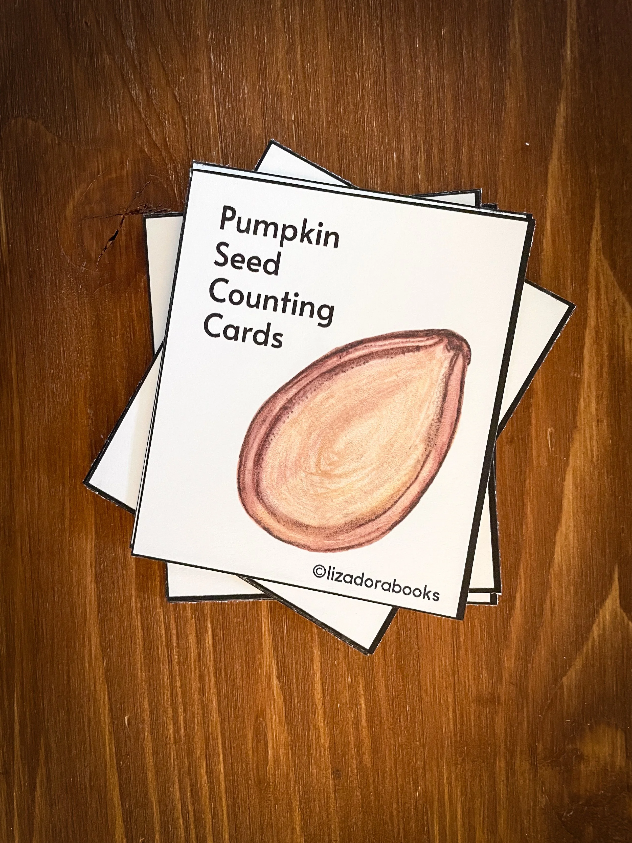 The beauty of this setup is that it invites curiosity. Your child picks up a card, sees three pumpkin seeds illustrated on it, and then counts out three real seeds to match. They’re building one-to-one correspondence, connecting a printed image to a real object, and using their hands to make math concrete. That connection between the illustration and the real thing is so powerful for young learners, and it’s exactly why we use nature-based imagery on our cards.